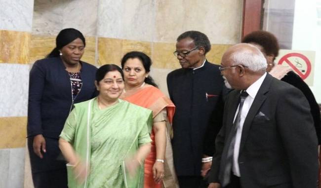 सुषमा ने कहा, ‘दक्षिण अफ्रीका का इतिहास उन लोगों की कहानियों से भरा हुआ है जिन्होंने बेहतर कल के लिए अपना पूरा समय दे दिया। भारतीय मूल के लोगों की कहानी निडर संकल्प और साहस की कहानी है। उन्होंने उपनिवेशवाद और रंगभेद के खिलाफ दक्षिण अफ्रीका के लंबे संघर्ष में कई त्याग किए।’ उन्होंने रंगभेद के खिलाफ अपने संघर्ष के दौरान अंतरराष्ट्रीय मंचों पर दक्षिण अफ्रीका को दिए गए भारत के समर्थन को याद करते हुए कहा कि भारत पहला देश था जिसने वर्ष 1946 में रंगभेदी सरकार के साथ व्यापारिक संबंध तोड़ लिए और इसके बाद दक्षिण अफ्रीका पर पूरी तरह से कूटनीतिक, वाणिज्यिक, सांस्कृतिक और खेल प्रतिबंध लगाए।