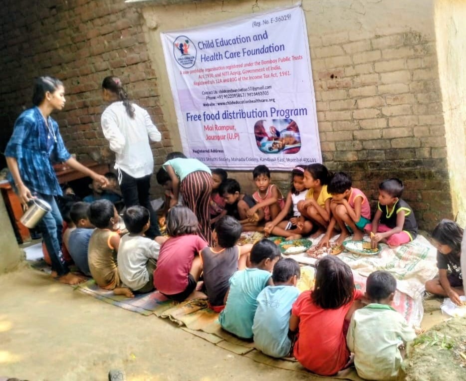 चाइल्ड एजुकेशन एंड हेल्थ केयर फाउंडेशन द्वारा बच्चों को भोजन वितरण