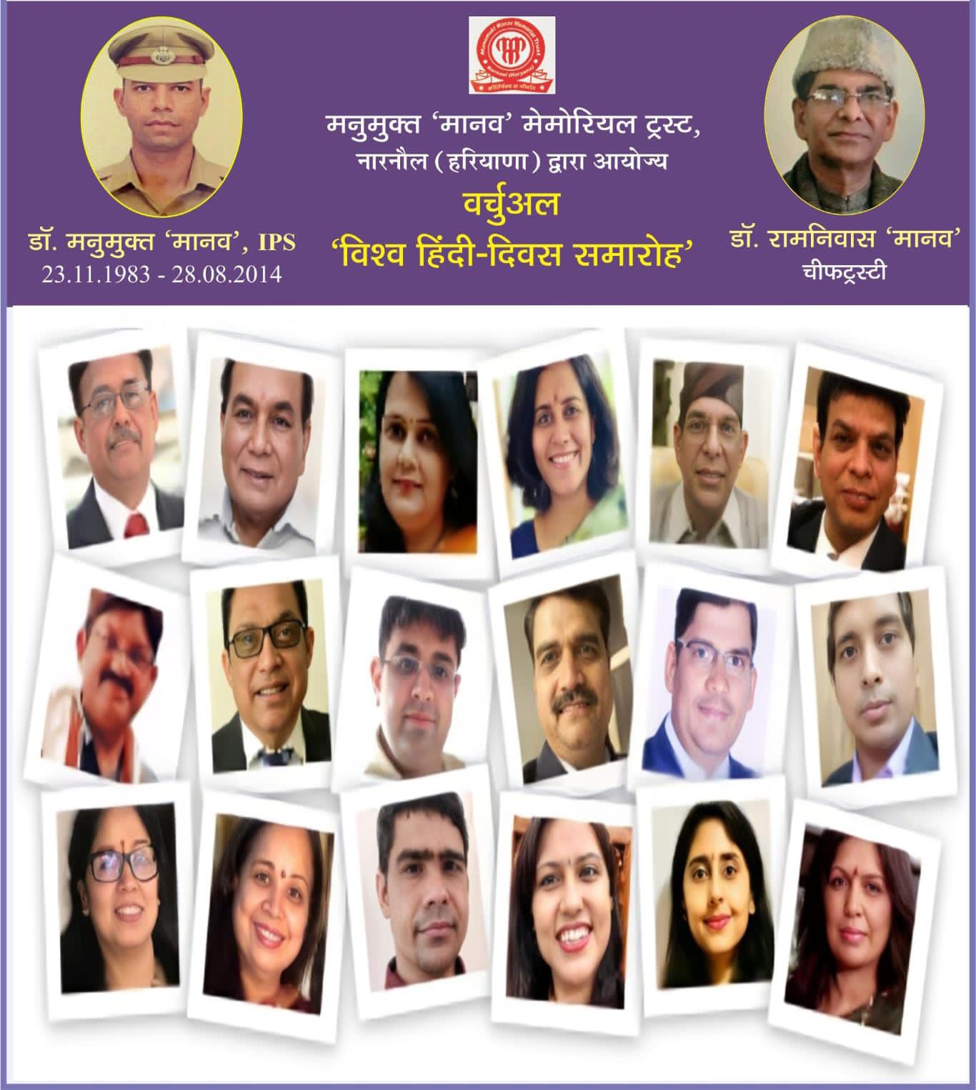 नारनौल। मनुमुक्त ‘मानव’ मेमोरियल ट्रस्ट द्वारा विश्व हिंदी-दिवस के सुअवसर पर भव्य वर्चुअल समारोह का आयोजन किया गया, जिसमें छह महाद्वीपों और भारत, नेपाल, आस्ट्रेलिया, सिंगापुर, कतर, घाना, बुल्गारिया, स्वीडन, ट्रिनिडाड और अमेरिका सहित दस देशों के डेढ़ दर्जन साहित्यकारों और विद्वानों ने सहभागिता की। रवींद्रनाथ टैगोर विश्वविद्यालय, भोपाल (मध्यप्रदेश) में अंतरराष्ट्रीय हिंदी-केंद्र के निदेशक डॉ. जवाहर कर्णावट की अध्यक्षता में आयोजित इस समारोह में अंतरराष्ट्रीय सहयोग परिषद्, नई दिल्ली के मानद निदेशक नारायण कुमार मुख्य अतिथि थे, वहीं केंद्रीय त्रिभुवन विश्वविद्यालय, काठमांडू (नेपाल) में हिंदी-विभाग की प्रोफेसर एवं अध्यक्ष डॉ. श्वेता दीप्ति विशिष्ट अतिथि और विश्व बैंक, वाशिंगटन डीसी (अमेरिका) की वरिष्ठ अर्थशास्त्री डॉ. एस. अनुकृति स्वागताध्यक्ष के रूप में उपस्थित रहीं। उद्योग विस्तार अधिकारी डॉ. सुनील भारद्वाज द्वारा प्रस्तुत प्रार्थना-गीत के उपरांत ट्रस्टी डॉ. कांता भारती के प्रेरक सान्निध्य और डॉ. पंकज गौड़ के कुशल संचालन में संपन्न हुए इस समारोह के प्रारंभ में चीफ ट्रस्टी डॉ. रामनिवास ‘मानव’ ने विषय-प्रवर्तन करते हुए हिंदी के वैश्विक विस्तार को अपने एक दोहे के माध्यम से इस प्रकार रेखांकित किया– चीन, रूस, ब्रिटेन तक, सात समुंदर पार। पूरी दुनिया में हुआ, हिंदी का विस्तार।। अपने उद्घाटन-भाषण में मुख्य अतिथि नारायण कुमार ने हिंदी को संपर्क और सद्भाव की भाषा बताते हुए कहा कि पूरे विश्व में फैले भारतीयों के कारण हिंदी अब विश्व-भाषा बन चुकी है। विशिष्ट अतिथि डॉ. श्वेता दीप्ति ने हिंदी को रोजगार से जोड़ने की वकालत की, वहीं डॉ. जवाहर कर्णावट ने अध्यक्षीय वक्तव्य में हिंदी के विकास में प्रवासी भारतीयों की भूमिका को महत्त्वपूर्ण बताया। केंद्रीय हिंदी निदेशालय, नई दिल्ली के सहायक निदेशक द्वय डॉ. नूतन पांडेय और डॉ. दीपक पांडेय ने प्रवासी भारतीयों को भारत का सांस्कृतिक दूत बताते हुए कहा कि विदेशों में हिंदी भाषा और भारतीय संस्कृति के प्रचार-प्रसार में उनका विशिष्ट योगदान रहा है।